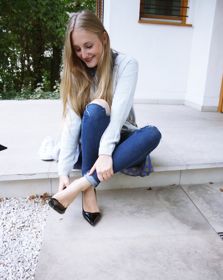 Jeans: Tophsop, Schuhe: Zara, Pullover: H&M, Bluse: Thakoonaddition